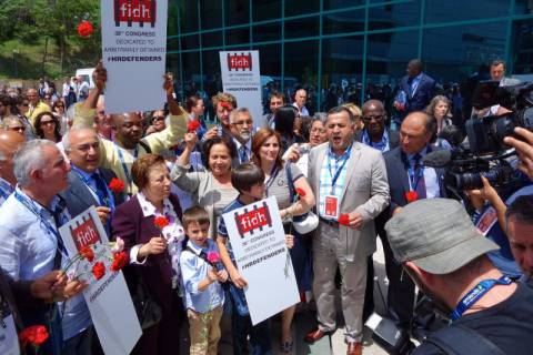 Нагадаем, з 23 па 27 траўня Стамбул прымае 38-ы Кангрэс Міжнароднай федэрацыі за правы чалавека (FIDH), куды з'ехаліся прадстаўнікі звыш 200 НДА з 130 краінаў. Галоўная тэма мерапрыемтсва - "Палітычныя пераходныя працэсы і правы чалавека: вопыт і выклікі".