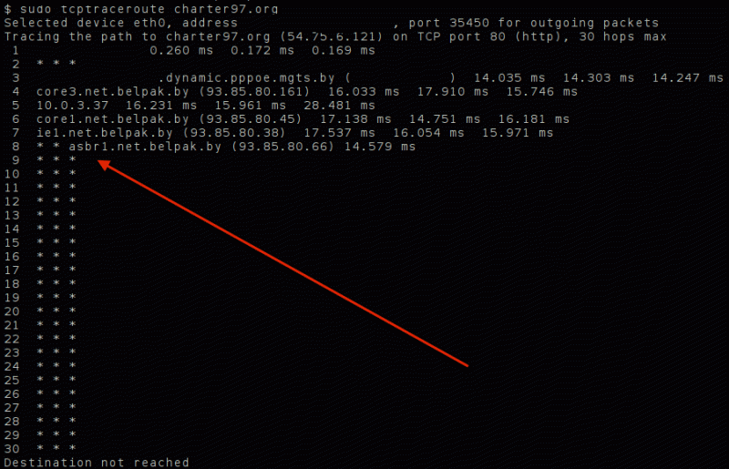 Расследаванне паказала, што блакіроўка ўстаноўленая на шлюзе дзяржаўнай сеткі перадачы даных "Белпак" (структурнае падраздзяленне РУП "Белтэлекам"), праз якую да інтэрнэту падключаныя астатнія правайдары.