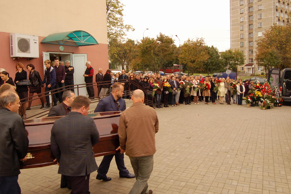 Па заканчэнні развітання труну з целам журналіста вынеслі пад беларускі нацыянальны гімн “Магутны Божа” і апладысменты – як гэта прынята пры развітанні з творчымі асобамі.