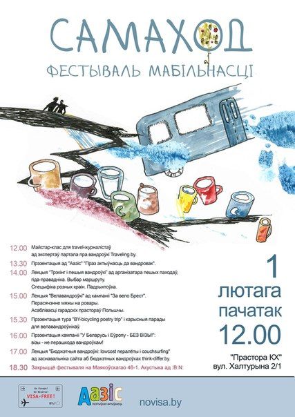 1 лютага ў межах фестывалю мабільнасці “Самаход” на брэсцкай пляцоўцы “Прастора КХ” адбудзецца БЯСПЛАТНАЯ серыя лекцый і прэзентацый на тэму танных падарожжаў.